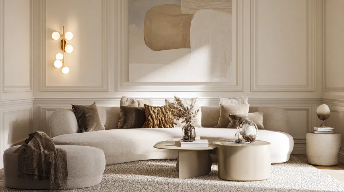 Modern living room ideas often begin with a calm, neutral base. Beige walls, cream sofas, and soft gray accents create a timeless foundation that makes any room feel bigger, brighter, and more inviting. Neutrals have this quiet power — they soothe the eye, balance the space, and give your home that effortlessly elegant look.
